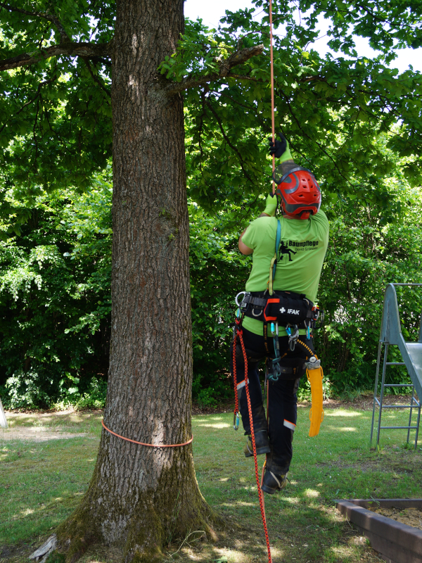 Neben der Entfernung von abgestorbenen Ästen übernehmen wir auch die professionelle Totholzentfernung, um Gefahrenquellen rechtzeitig zu beseitigen. Ob Kroneneinkürzung, Lichtraumprofil oder Erziehungs- und Formschnitt – wir passen unsere Maßnahmen individuell an den jeweiligen Baumstandort und die Baumart an. Dabei arbeiten wir nach den aktuellen Richtlinien der ZTV-Baumpflege und mit modernster Seilklettertechnik.